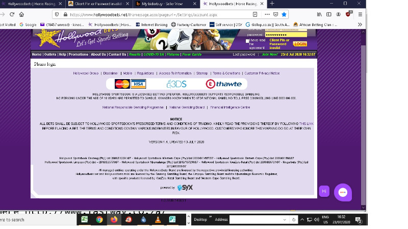 5 years 9 months ago - 5 years 9 months agoDev wrote: Hi Mr H. We have noticed this issue with older Hollywoodbets accounts. We have figured out how to fix it, and we have done so with your account. You should not have to reset it again going forward. Thanks, Devin, Hollywoodbets
