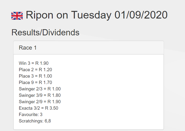 Check the amazing value for the returns on Ripon race 2. For those that punted the race and know what an open race it was.