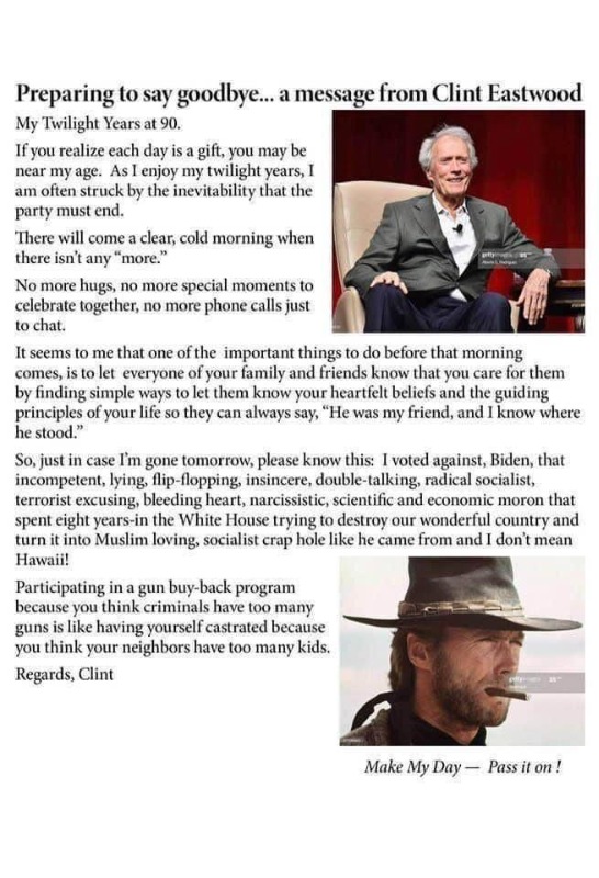 Well said Clint Eastwood , I never liked the looks of that Biden shifty character