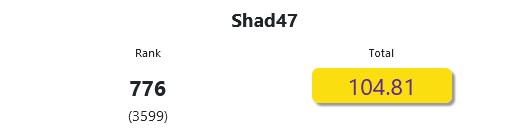 I am 185 on monthly leader board. Hopefully will move up lots today.