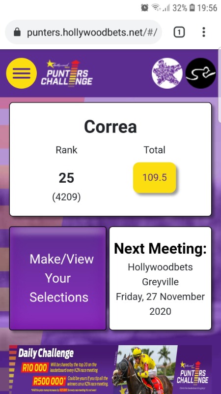 Re: Re:Hollywoodbets Punters Challenge - Reloaded