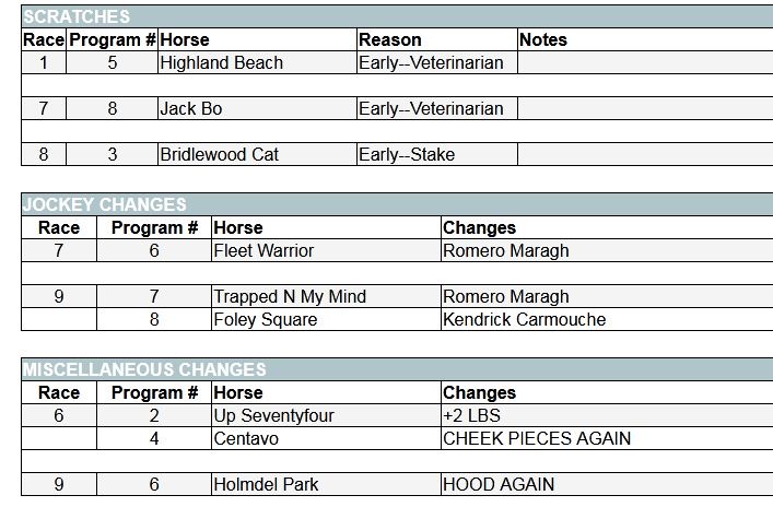 According to NYRA, on Race 6 Black N Tarn is a runner and Hollywood scratched it.