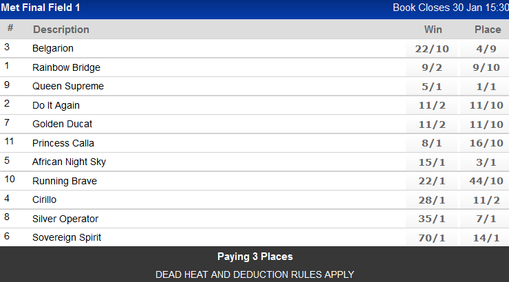 I see that RAINBOW BRIDGE is 2nd Fav at around 9/2.