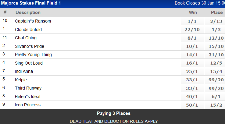15 runners - won't be easy as there are quite a few speedsters in the race - but I agree, probably the right choice - although she almost pulled off the Majorca last year