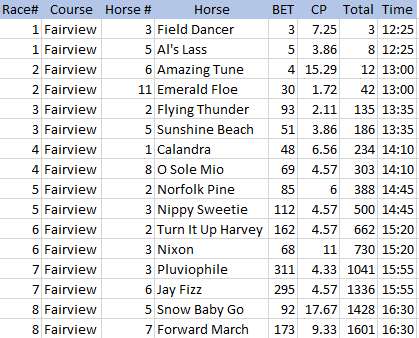 My selection today. Playing for Fun to R10. Multiply BET * 10 to play for R100 win. Stopping at first win (BET changes as current price changes - Figures are what is current)