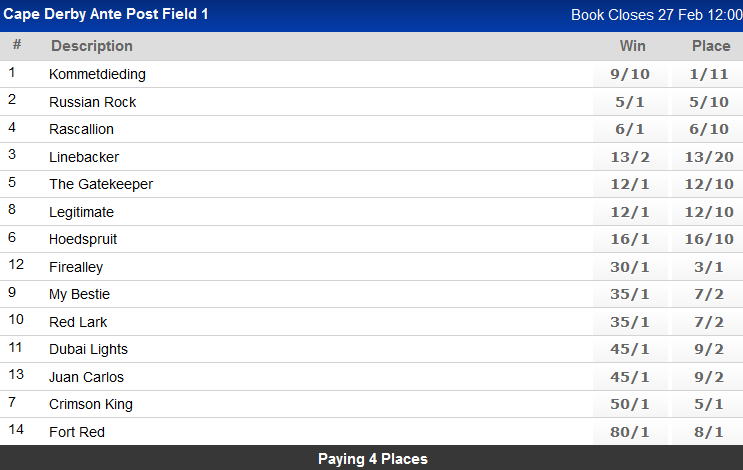 Re: Entries Cape Derby