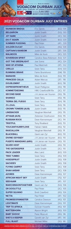 5 years 1 week agoVodacom Durban July 2021 First Entries