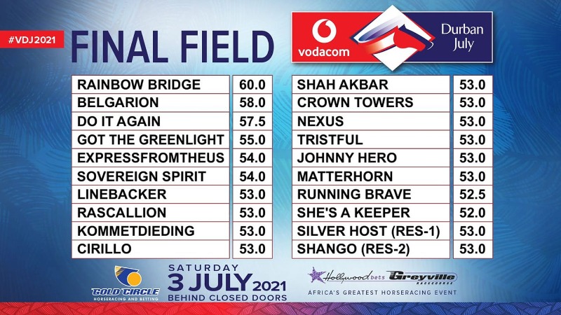 Re: The Vodacom Durban July Log as at 31 May 2021