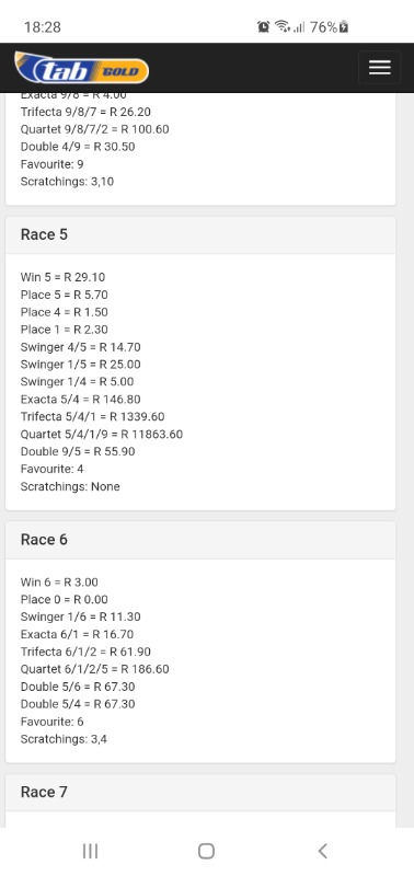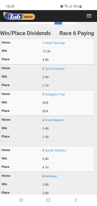Win / place tab has it at R3.90 a Win, final result is at R3.00 a win.