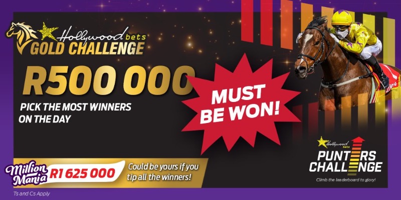 This Saturday, R500 000 WILL be won by the person/s who picks the most winners on the day in the Punters' Challenge. The card at Hollywoodbets Greyville features 3 graded races including the Hollywoodbets Gold Challenge.