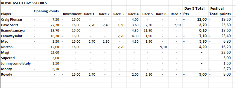Re: Re:ROYAL ASCOT TIPPING COMPETITION DAY 5 - FREE ENTRY