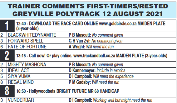DEEZ`S Selections for today`s action at #Greyville