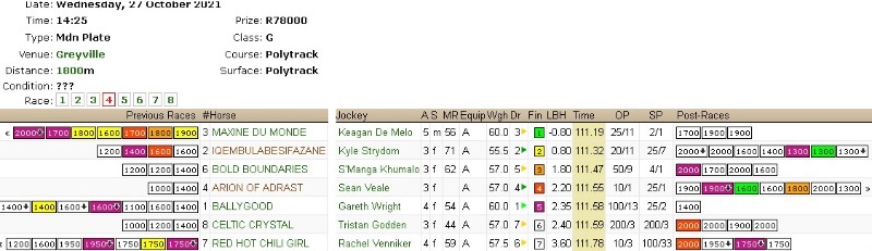 9 months 2 weeks ago - 9 months 2 weeks ago"]Greyville Race 4 27 October 2021
