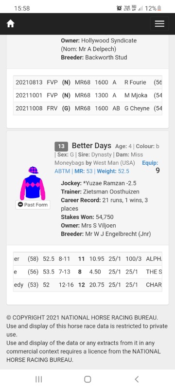 Greyville race 1 qualified maiden plate so probably like a handicap though but still shouldn't have been beaten that far.