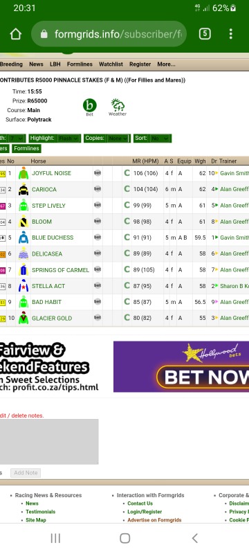 Race one my gut feeling the money is on wrong Visser stable horse. DAME COLLEEN looks live