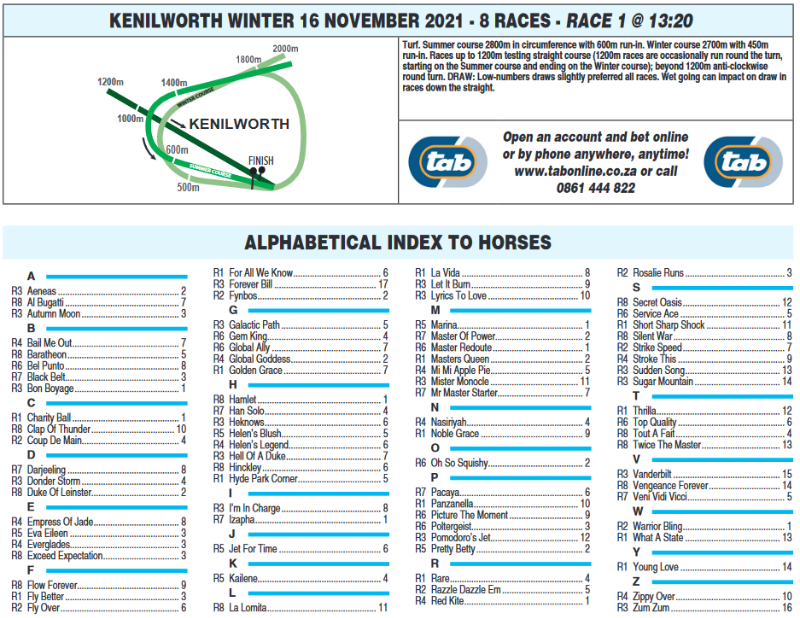 8 Races from 1:20pm - 5:25pm