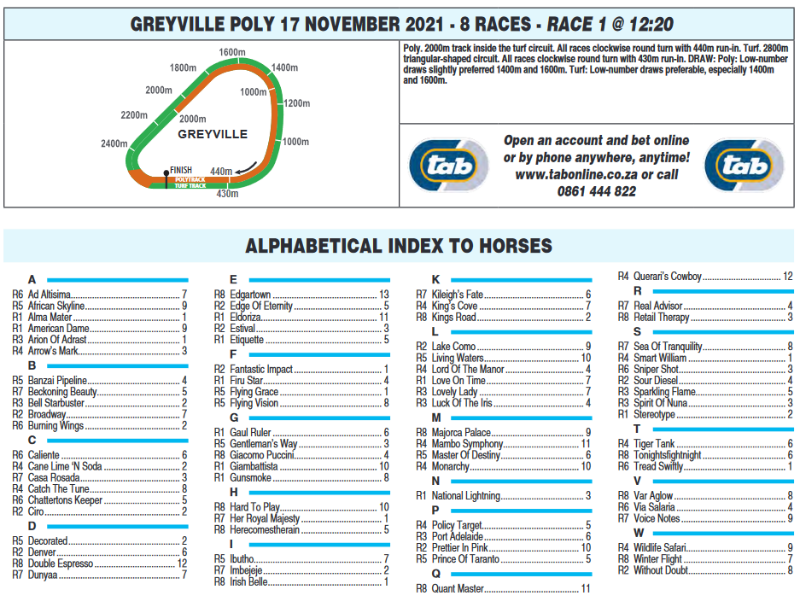 Racecard: www.goldcircle.co.za/.../rac.../greyville_17_nov.pdf