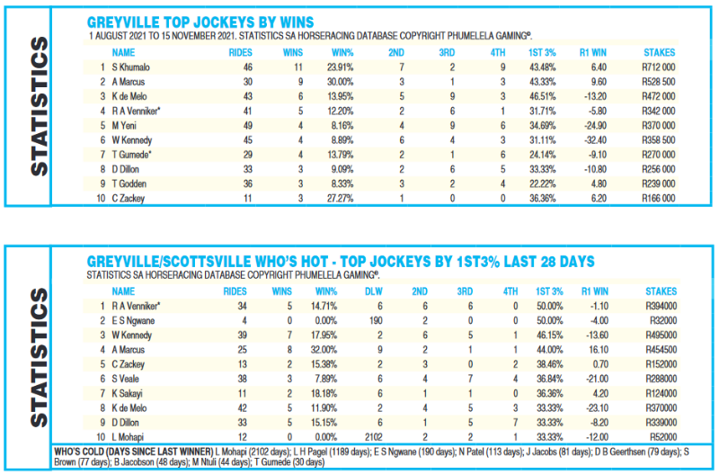 Re: Greyville, Sunday 21 November