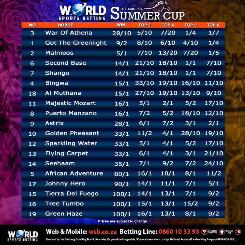 Re: Turffontein, Saturday 27 November - WSB Summer Cup Day
