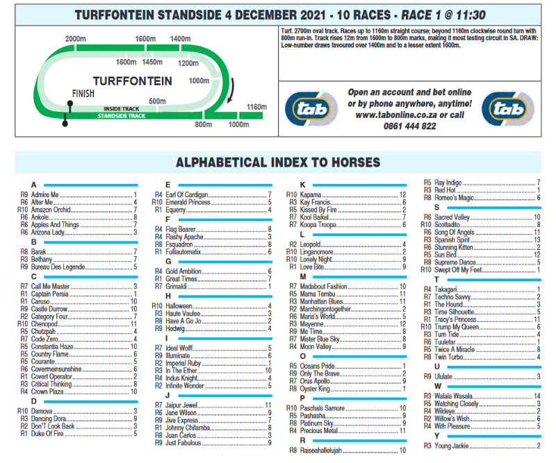 Re: Turffontein, Saturday 04 December