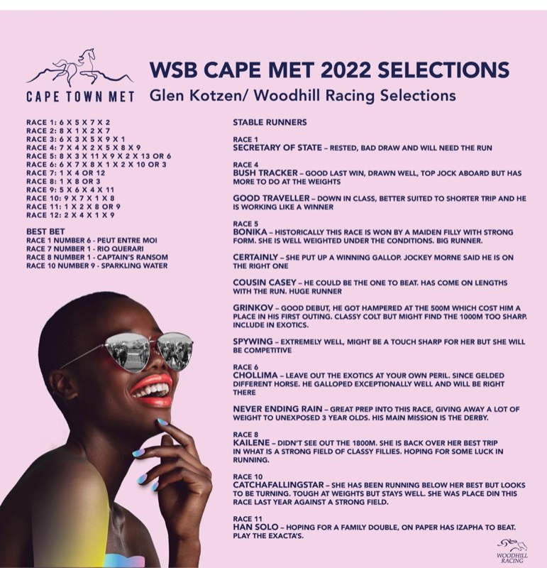 Make sure you play the pick 6 which is expected to reach over R10 million. Also don’t forget the carryover quartet (top 4) in race 12.