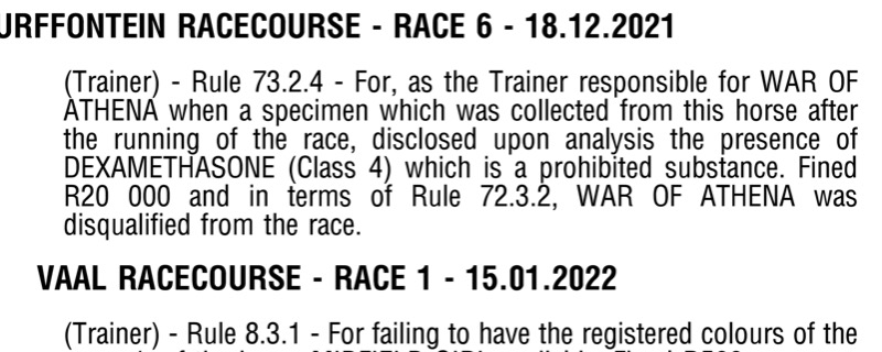 What I want to know is if War Of Athena was drugged (as the trainer was obviously caught and fined and the horse disqualified) How do I know if all his runners today are not drugged ?