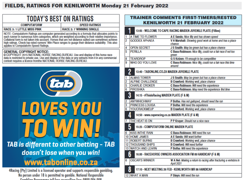 Hundred percent, atleast they responded and gave comments, in jhb most trainers refuse or only give comments on some horses.