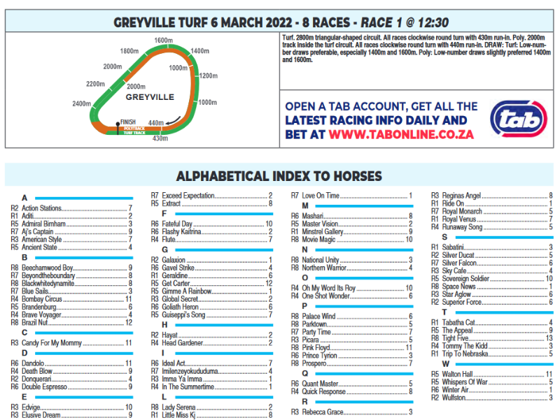 Re: HW Greyville (turf) Sunday 06 March