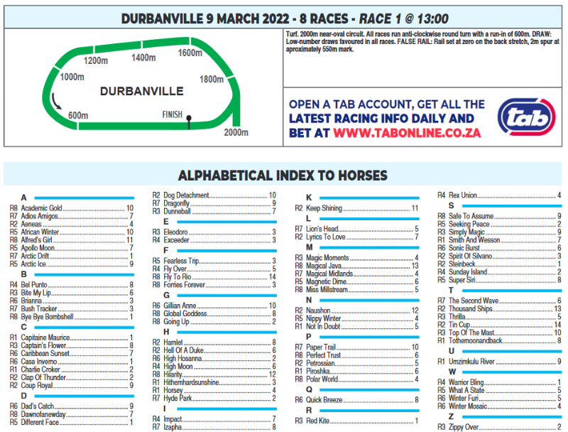 Worked on yesterday's card until 2 this morning. There were some races that would not have been possible with form study alone and track info was key. The INTEGRITY race needed a much keener eye and deeper study but was possible. That track info won't be readily available everyday and when you are punting from the bush without DSTV or a podcast you are dead in the water (and track info is often just an indicator anyways). Who wants to sit and watch DSTV all day hoping for a worthwhile tip. Life is short. So much more evidence that your propensity for leaving a race should be stronger than your desire to make a wager. Let's see if we can circumvent the dodgy ones today. Enjoying the SA racing again after a year on the UK cards.