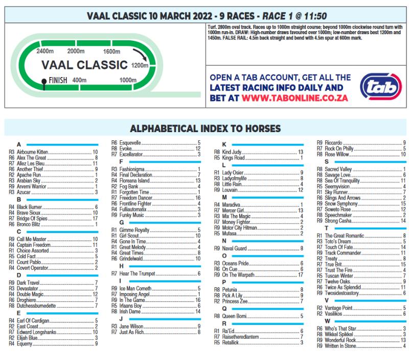 Re: VAAL CLASSIC, THURSDAY 10 MARCH