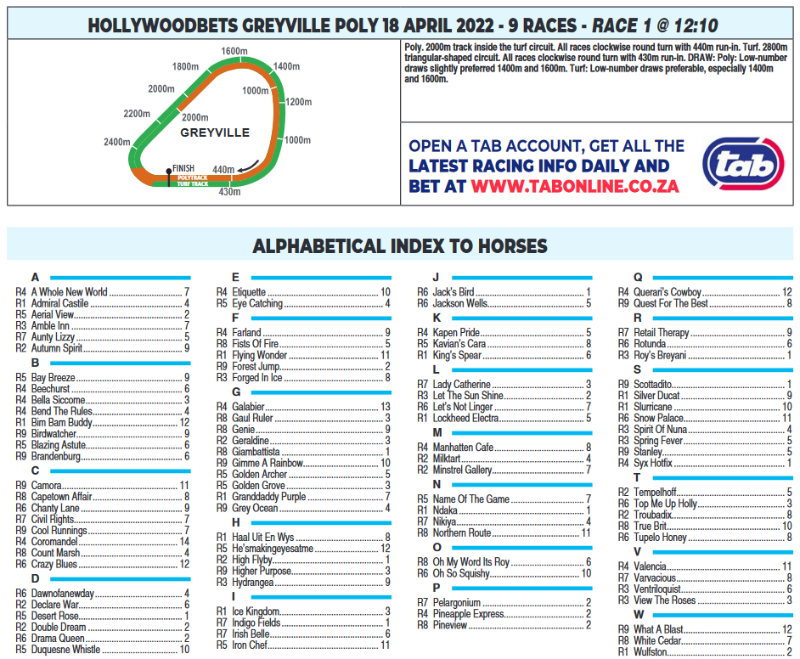 Re: Hollywoodbets Greyville, Monday 18 Apr