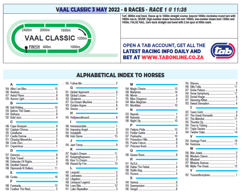 Re: VAAL CLASSIC TUESDAY 3 MAY