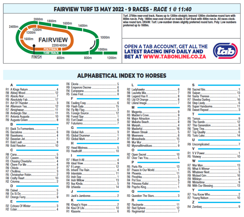Re: FAIRVIEW TURF FRIDAY 13 MAY