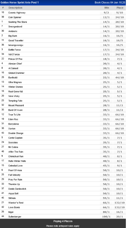 Re: ENTRIES GRADE 1 SPRINT DAY