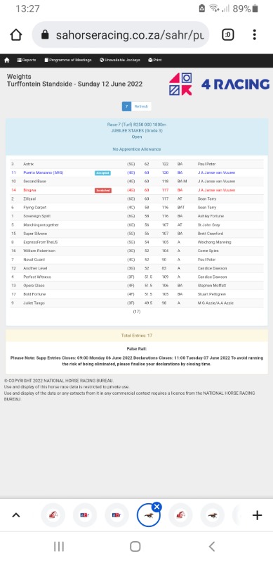 An interesting omission from both the Cup Trial and Jubilee, is Flying Carpet; he does hold a preferential entry by having won the Summer Cup (beating one of the favorites for the July Sparkling Water by 4,5 lengths at level weights); I would have thought he'd be given a prep run in one of those races - so we don't know if the trainer has found another race somewhere, or what the story is