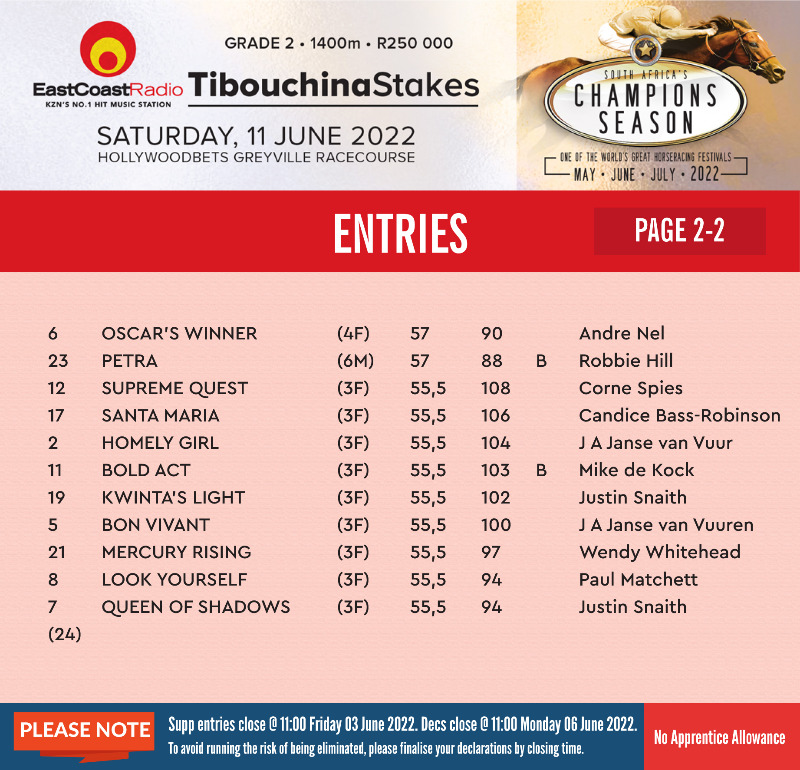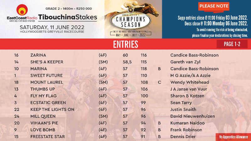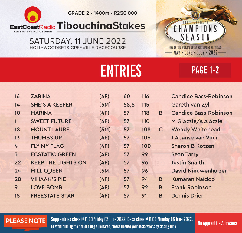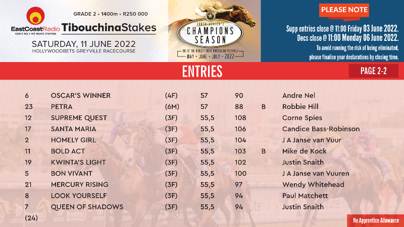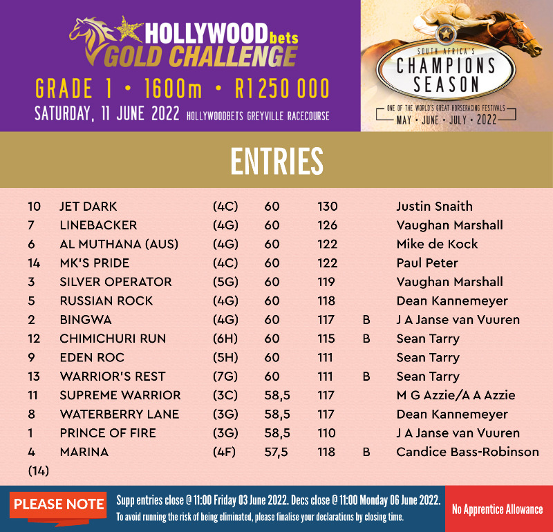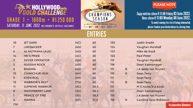 Re: HOLLYWOODBETS GOLD CHALLENGE (Grade 1) Entries