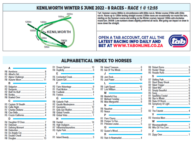 KENILWORTH WINTER COURSE SUNDAY 5 JUNE