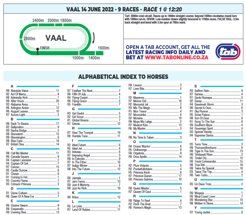 Re: VAAL TUESDAY 14 JUNE