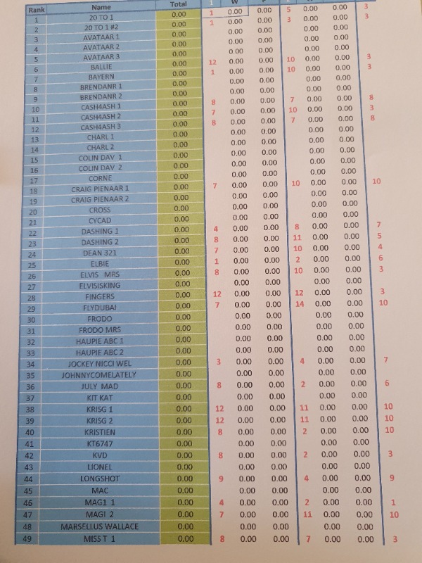 Re: Time for ABC BUMPER DURBAN JULY COMPETITION