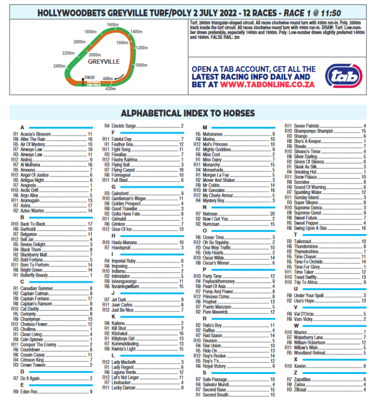 Re: Re:Hollywoodbets Greyville Saturday 02 July - #HWDJ2022