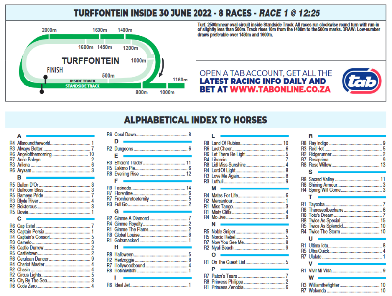 Re: TURFFONTEIN INSIDE THURSDAY 30 JUNE