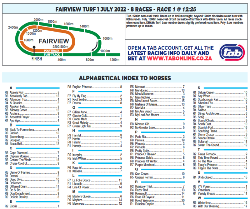 Absolutely Fab also in race 6 and am told that she is well. Low weight, fair draw so must have a chance.
