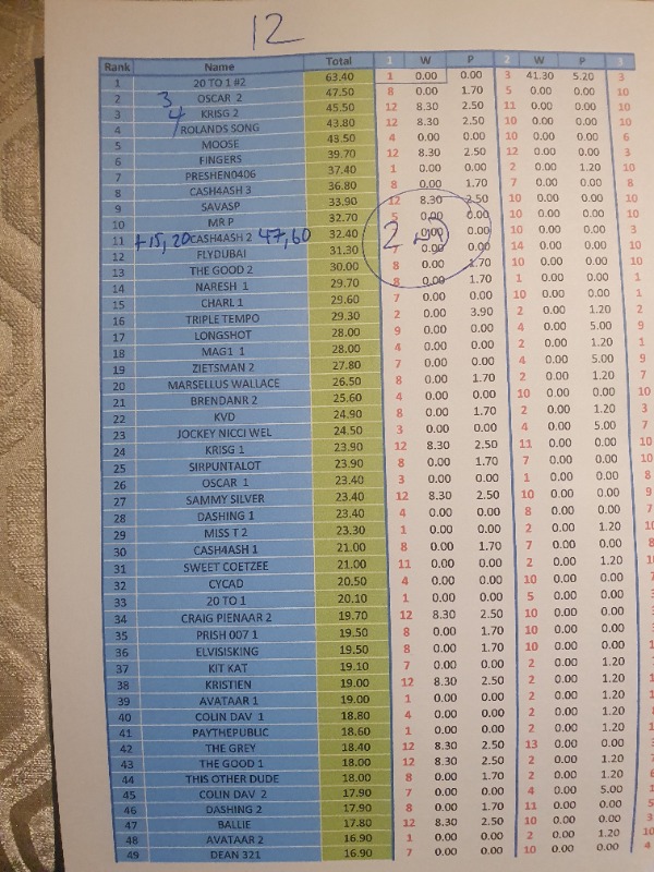 PLEASE GUYS IN TOP 10............... CHECK RESULTS .... MAKE SURE I HAVEN'T KOCKED UP !