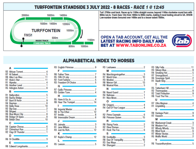 Re: TURFFONTEIN SUNDAY 03 JULY
