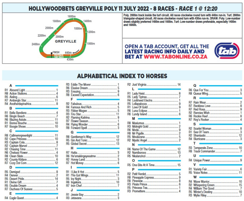 Re: HOLLYWOODBETS GREYVILLE MONDAY 11 JULY