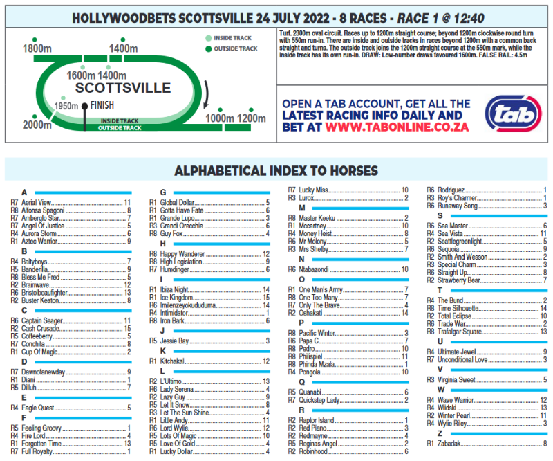 Re: HOLLYWOODBETS SCOTTSVILLE SUNDAY 24 JULY 2022