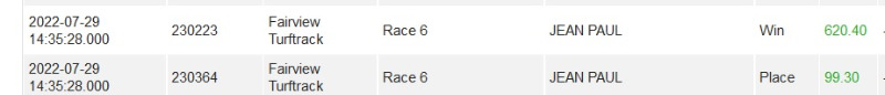 Not often that this happens but when my software puts a 60-1 shot on top in Race 6 Jean Paul then it has to be a good day. Picked up R720 for my R20.