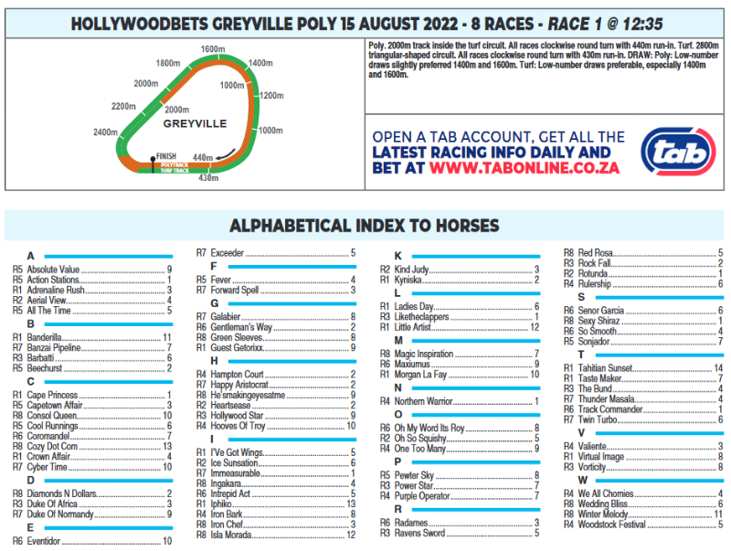 Re: HOLLYWOODBETS GREYVILLE MONDAY 15 AUGUST
