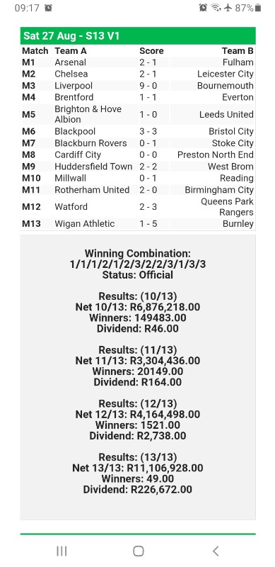 On another note, the UK swingers commingling got to stop. Its of no value. The pound verse rand is knocking us into oblivion. £20 swingers by a UK punter equates to 400 times in Rands and with pools only reaching 7k at times the dividends drops drastically. Only offer commingling for swingers with UK on World Pool days.
