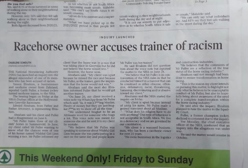 Racehorse owner accuses trainer of racism